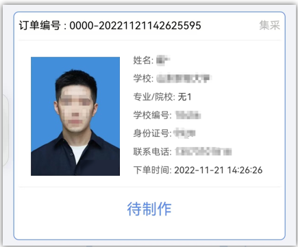 (8)审核通过之后订单会显示订单状态为待制作,请等待照片制作。订单显示制作完成后本次采集完成。