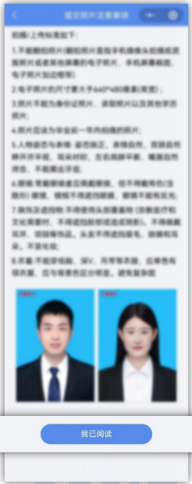 5.关于采集要求。请务必详细拍摄指示页面。采集时需纯色背景,由另一人用手机后置摄像头拍摄,请勿自拍。现场应保证光线均匀,画面在人像框内处于中心位置,头肩摆正,图像下边缘处于衬衣第三颗纽扣位置。
