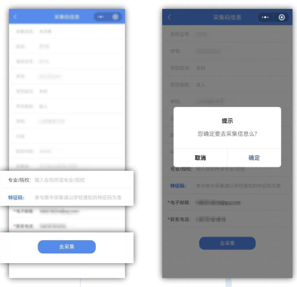 (2)确认采集码解析出来的信息(如有误请与学信网信息核对)。