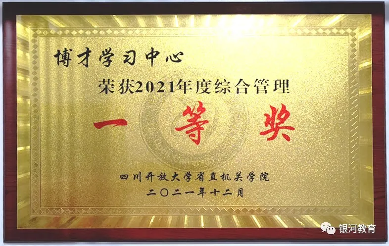 2021年12月22日,四川开放大学省直机关学院颁发了2021年度综合管理奖,成都博才专修学院(博才学习中心)荣获一等奖。