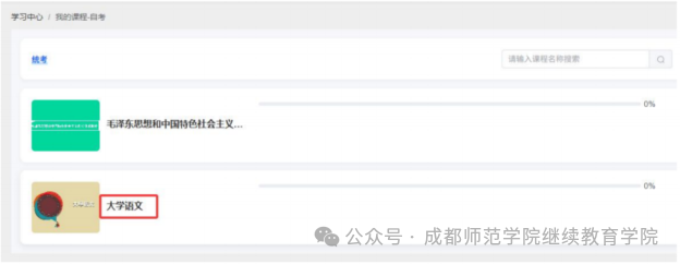 3、报名完成后在规定的时间进行视频学习,点击【学习中心】一点击【课程】进入到所报名课程的学习页面