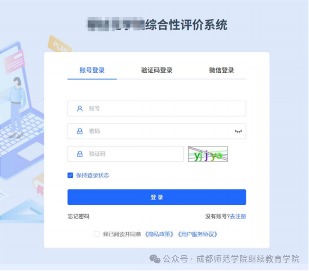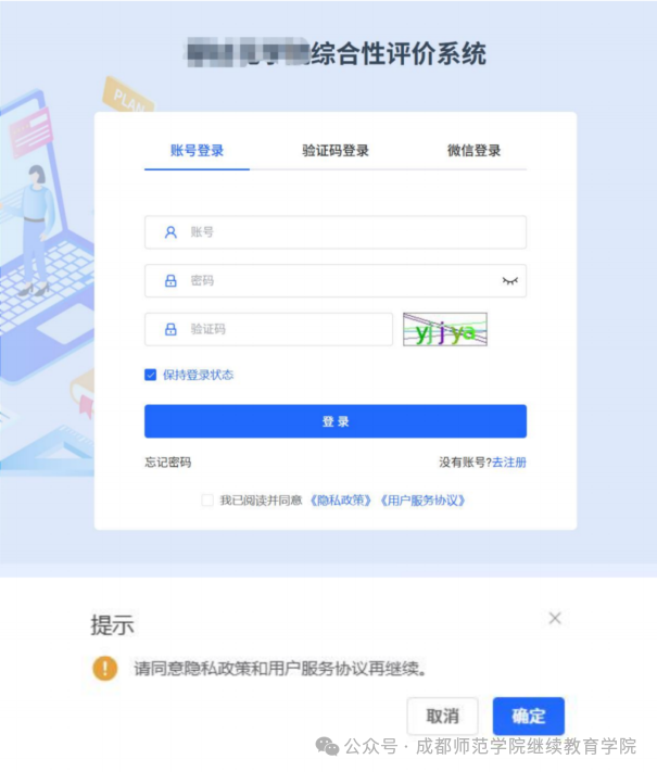 2、注册完成后提示点击确认,初始密码123456,进入到登录页面,输入账号(账号为身份证号)、密码和验证码,并且勾选"同意隐私政策和用户服务协议"最后点击【登录】