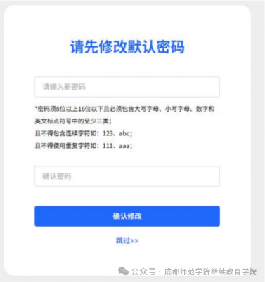 3、登录后进入到修改密码页面,按照提示修改密码,点击【确认修改】
