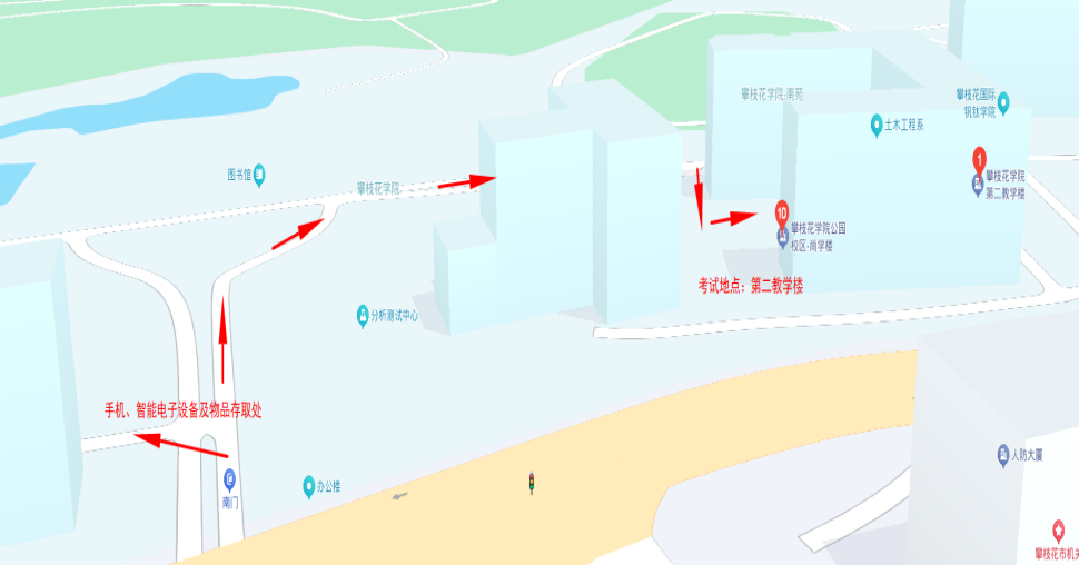 (二)详细地址:四川省攀枝花市东区三线大道北段10号(导航地图显示南门为考生进入考点唯一入口)